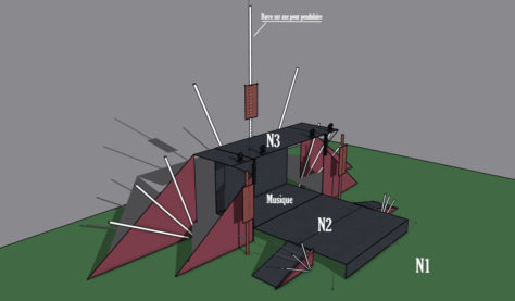 Accès véhicule et remorque (15 m de long) sur l’espace scénique